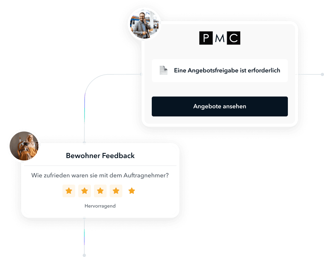 Mit leistungsstarken Tools zur Vernetzung von Mietern, Eigentümern, Mitarbeitern und Dienstleistern digitalisieren Sie Ihre gesamte Wertschöpfungskette. Das Ergebnis: Echtzeit-Prozesse in allen Geschäftsbereichen.