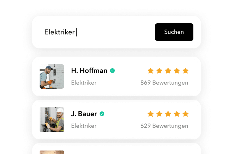 Wählen Sie aus einer großen Vielfalt aus vorab geprüften, hochqualifizierten Dienstleistern und Handwerkern Anbieter, denen Sie vertrauen können.