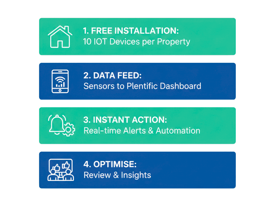 - Sensors feed data directly into your Plentific dashboard.